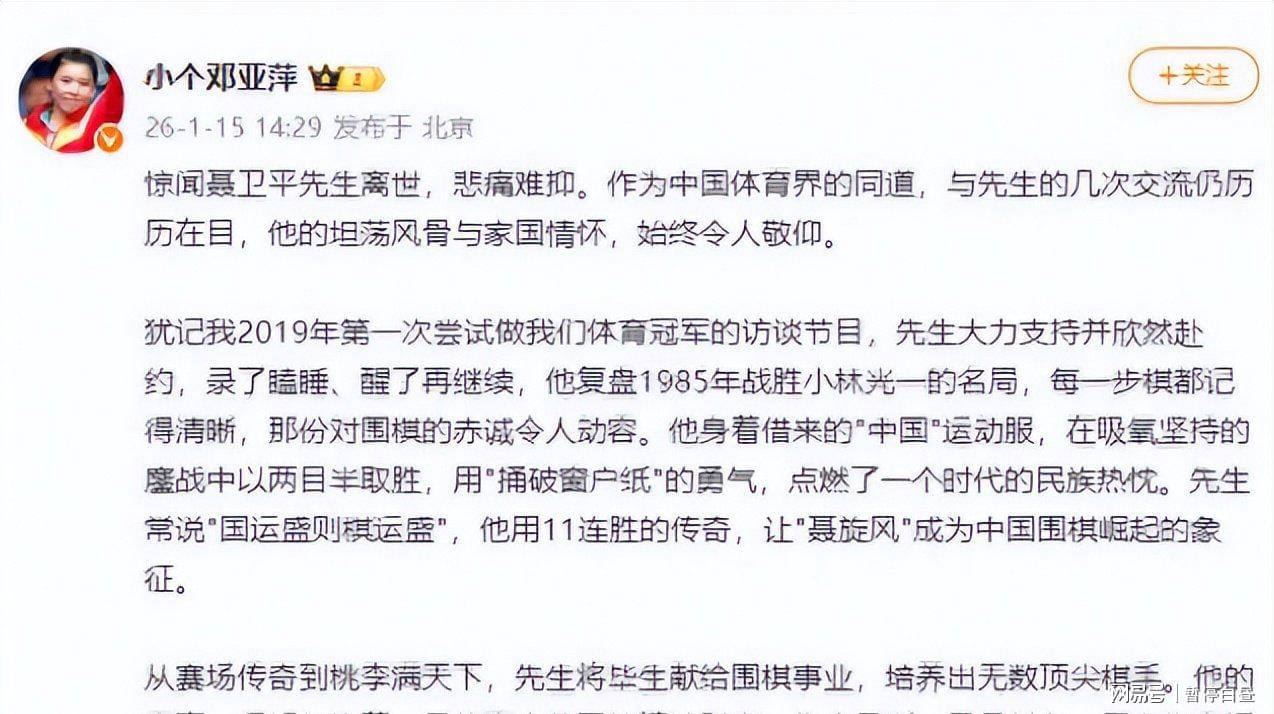 字里行间,不仅有对聂卫平的缅怀,更藏着对他的敬佩与尊重。