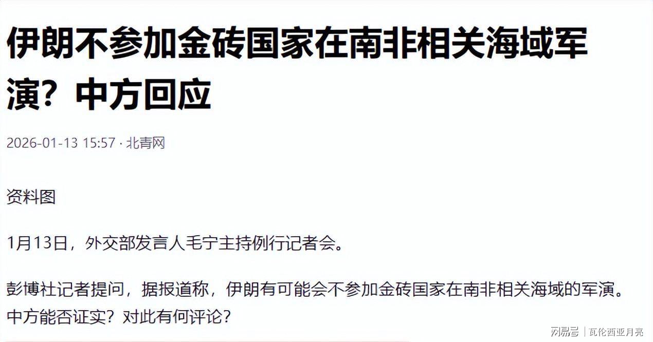 1月12日,金砖“和平意志-2026”军演现场,南非竟突然要求伊朗退出实战演练,降级为观察员。
