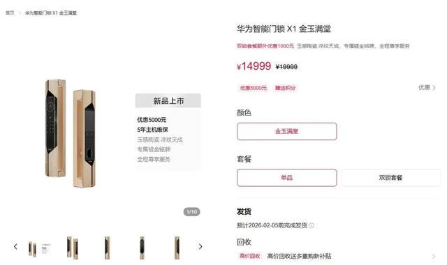 华为官网今天上架的新品,就是华为智能门锁X1金玉满堂。