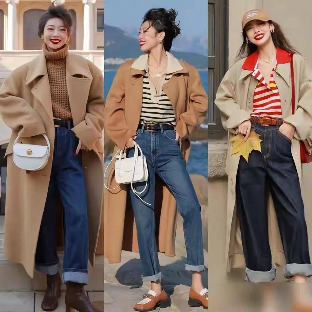 如果是中年女性,咱们直接选择高腰收腰款的大衣外套,就像赵雅芝一样,用一件粉色的 L 腰收腰大衣搭配上牛仔阔腿裤,这样一看整体身材线条感非常的流畅而且比较有气质。