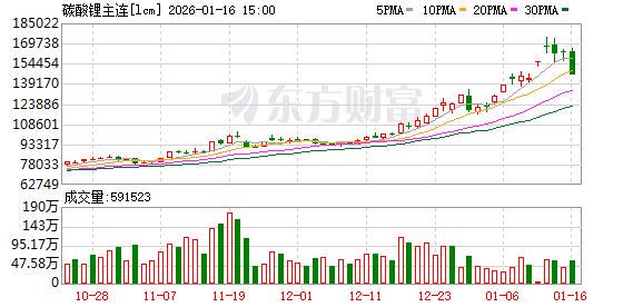 1月16日,碳酸锂期货价格再度回调,主力合约2605报收14.62万元/吨,跌幅达8.99%。