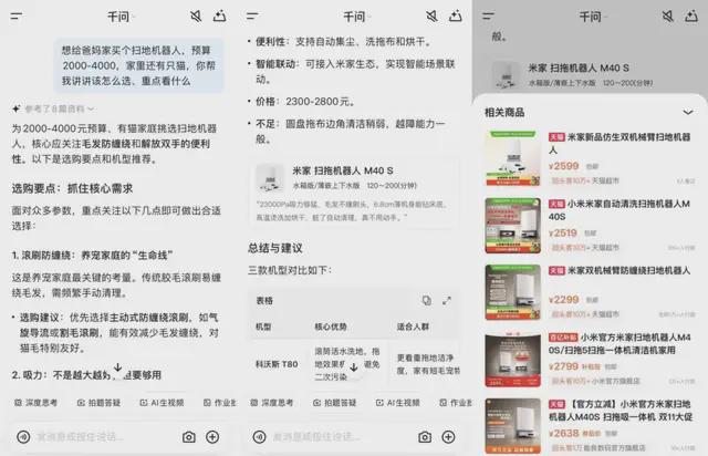 ▲用千问推荐买扫地机器人的问答及下单流程
