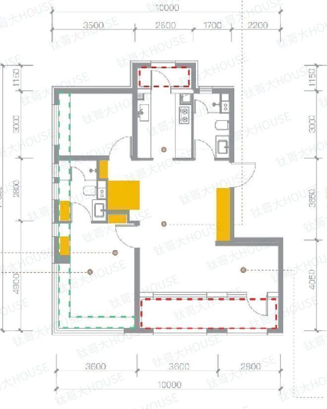 另外与常规户型不同的是,北侧房间的开窗并没有在正北侧,而是东/西侧边开窗,这样采光会更好。