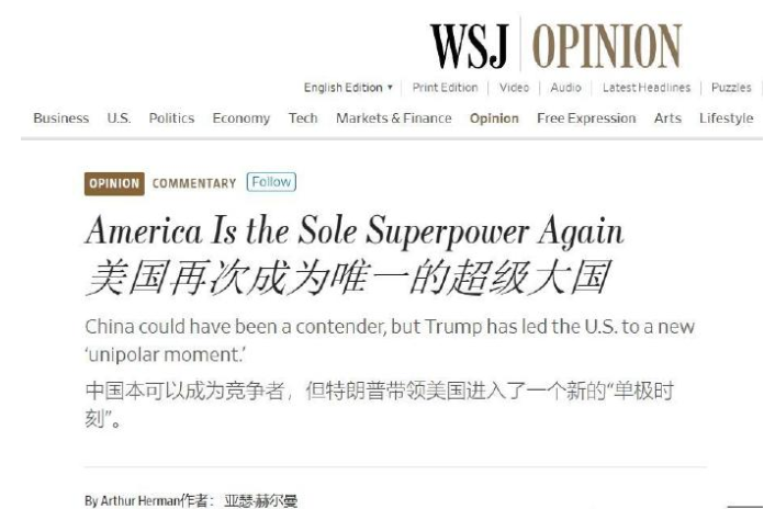 华尔街日报:中方错失重大机会,美国仍是唯一超级大国!
