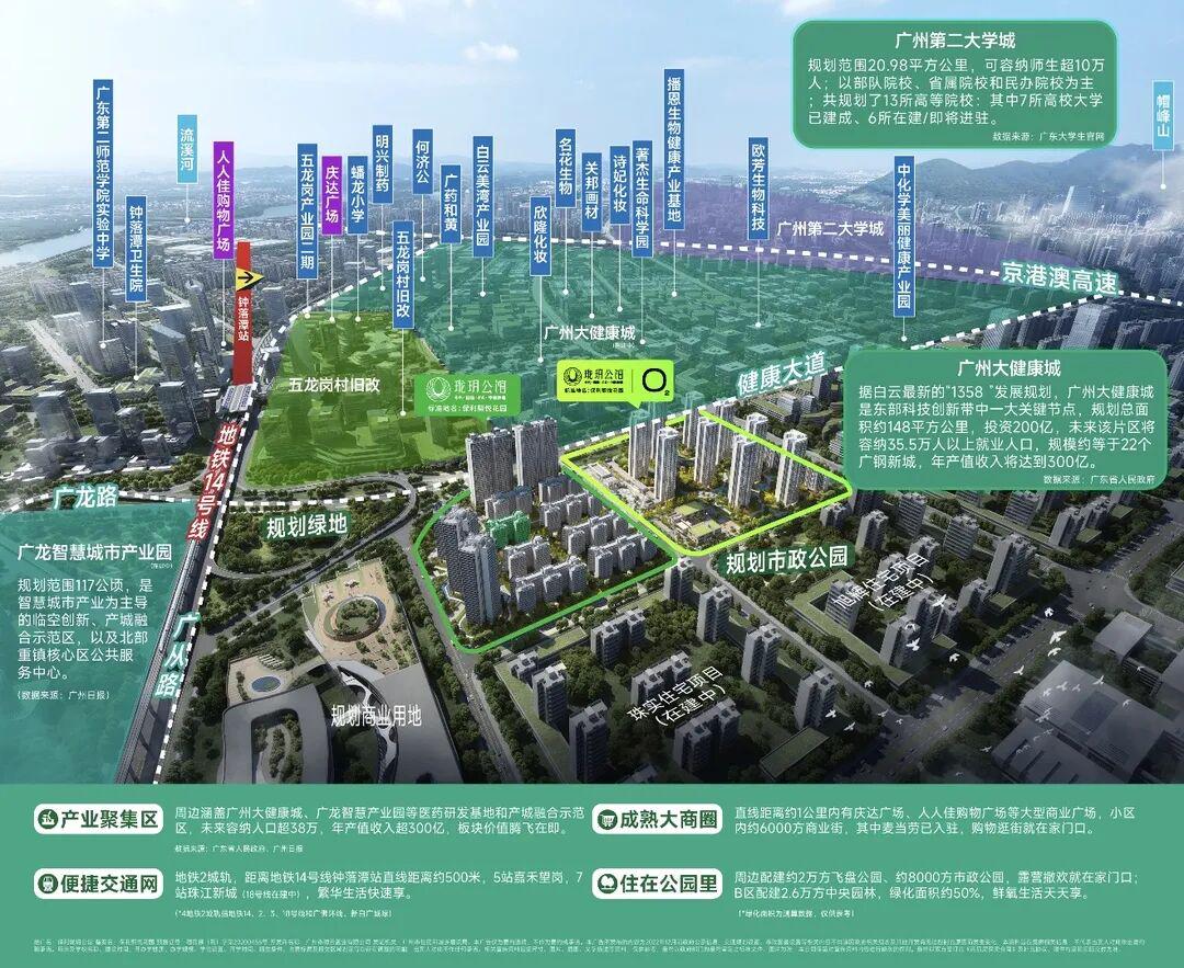 - 区位价值:项目位于白云区钟落潭健康城核心区,毗邻地铁14号线,通达嘉禾望岗及白云新城核心区域,交通便利性高。未来城轨与地铁延伸工程将进一步提升区域通勤效率。