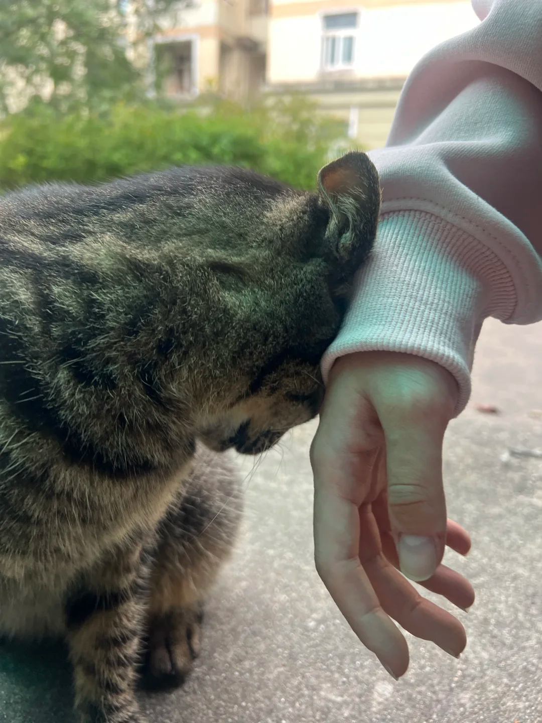 当主人情绪低落时,猫咪会默默靠近,用头蹭主人的手,这是猫科动物表达安慰的方式;