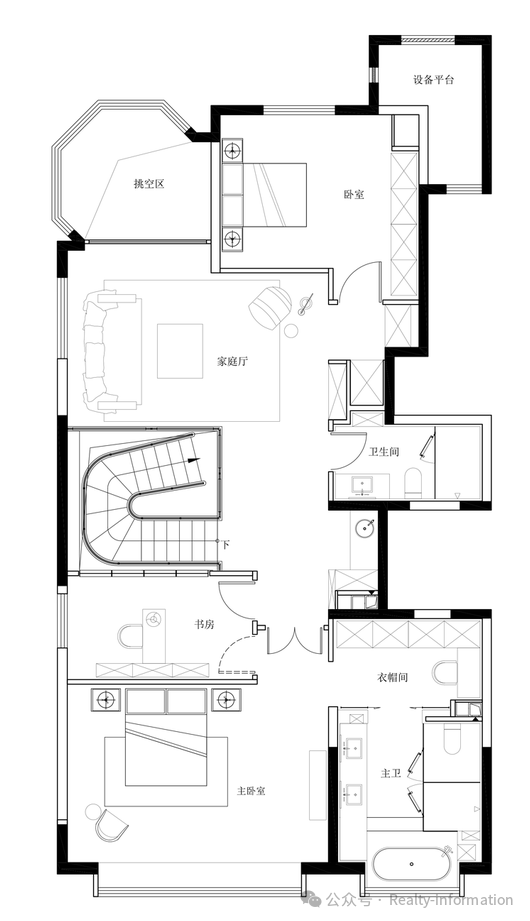 【家庭私享层】约3.3米标准层高;南北分别为男孩+女孩套房设计,给予孩子们各自专享的空间,另享学习室/起居室,可供孩子们阅读、嬉戏