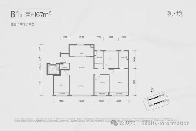 户型格局与167中间户一样,不同是主卧带270度转角飘窗,视野和采光更棒,居住空间尺度会更舒适。