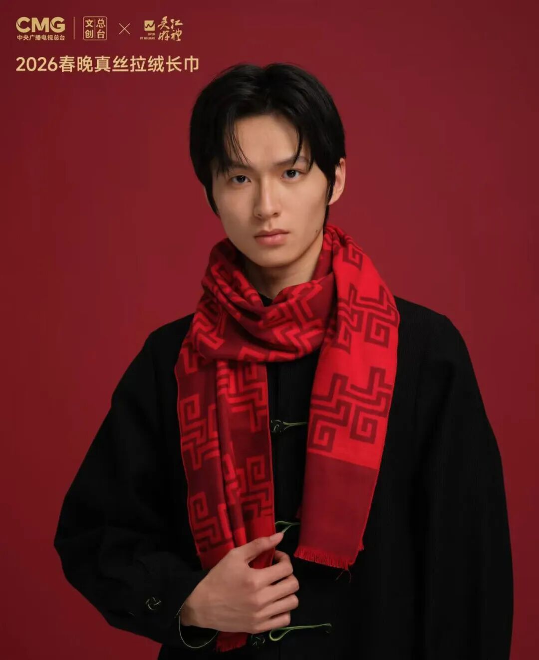 2026马年春晚围巾的面料,含6A级桑蚕丝。