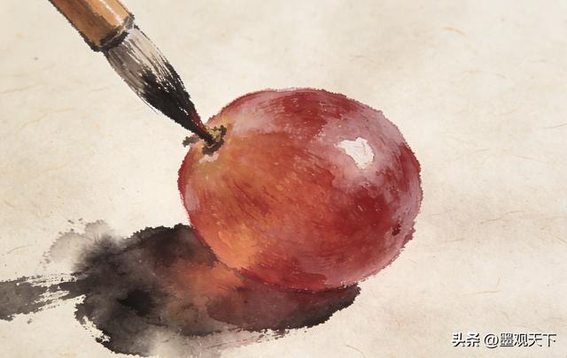 写意画讲究“以笔带墨,以墨传神”,红葡萄的用笔核心是“圆、润、活”: