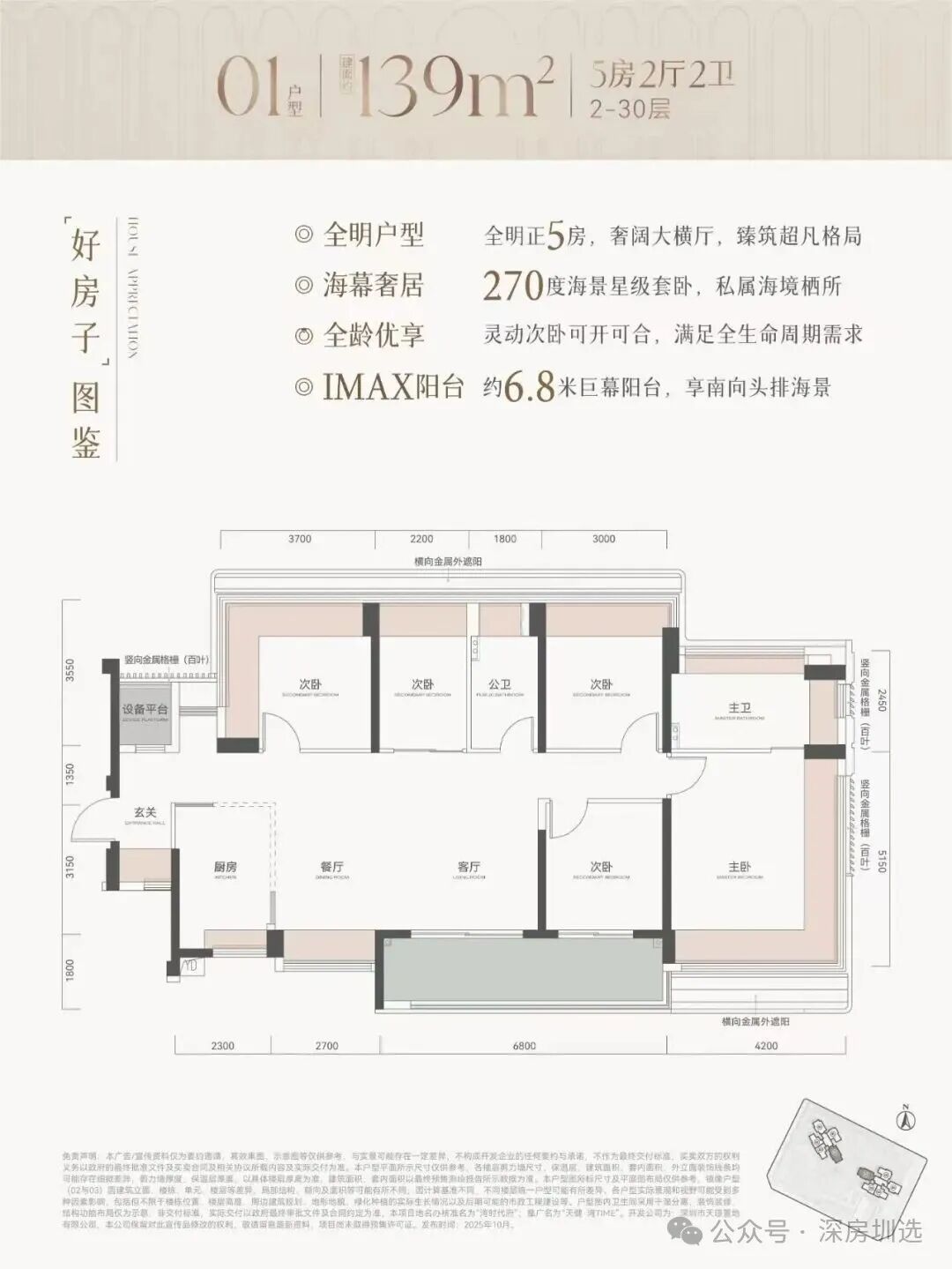 约80%南向全明大面宽户型,全屋环绕式采光面,盛满一室阳光;约6.3-6.8m阔景大阳台,晨间瑜伽、午茶瞰海、暮色小酌,海幕星空自成生活背景;海景星级套卧,270°环幕自在观景,享受头排海景盛宴。