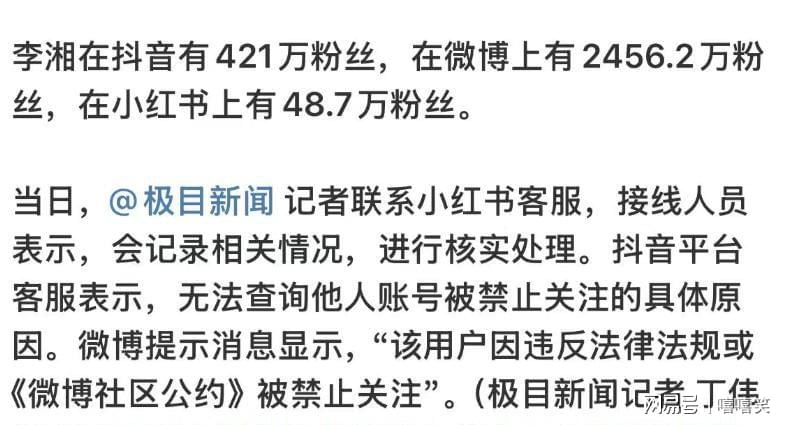 截至目前,李湘及其团队始终保持沉默,平台也只给结论不给具体原因。