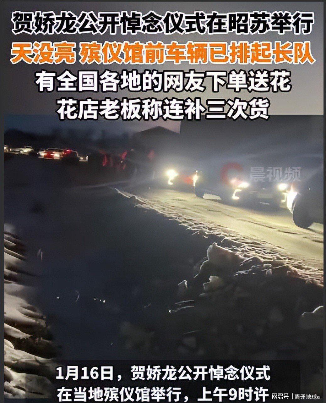 在追悼会开始前,殡仪馆前的道路上挤满了车辆与人影,甚至有人连夜驱车数百公里,只为送贺娇龙最后一程。