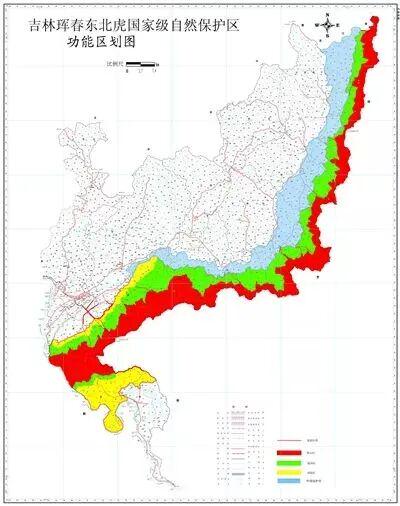 吉林珲春东北虎国家级自然保护区功能区划图。资料来源:珲春市环保局