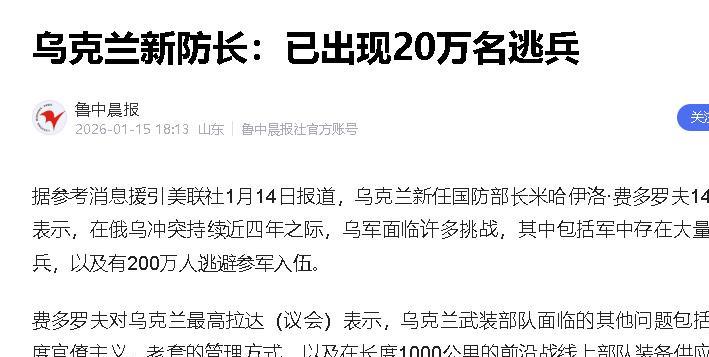 更麻烦的是,强制征兵在乌克兰很不得人心,费多罗夫透露如今已经有20万人从军队逃役。