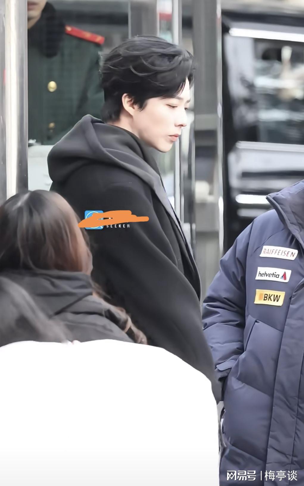 李昀锐真的要风度不要温度,这么冷的天,竟然里面就穿了一件白色T恤,虽然穿着黄色的棉服,但是却开着扣子。