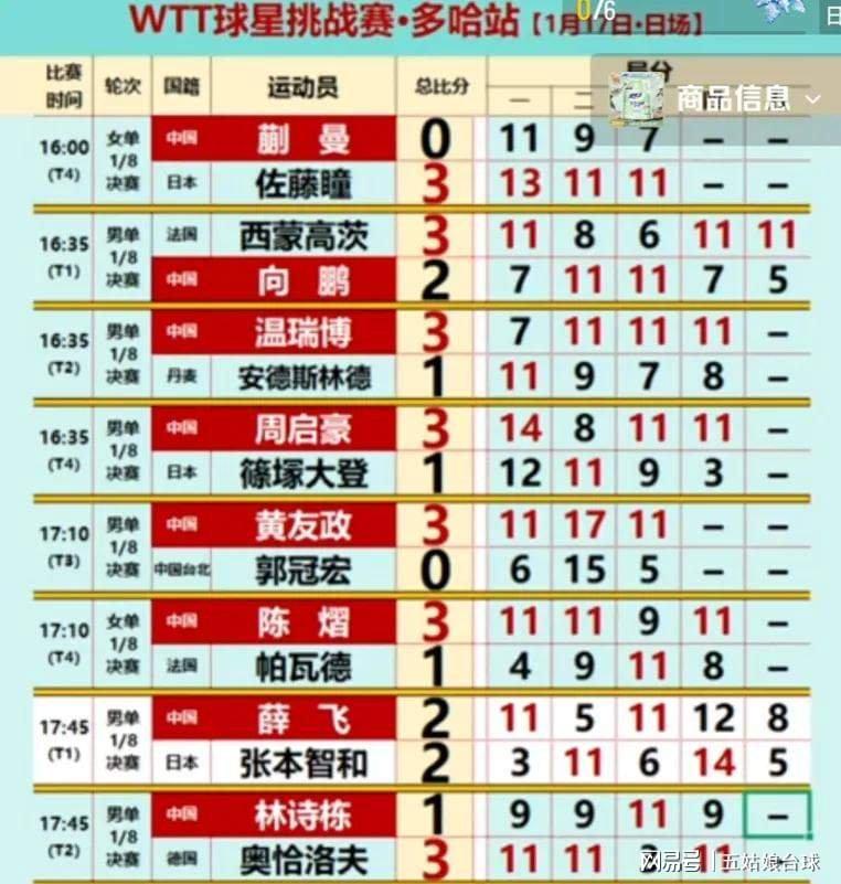 1月17号多哈赛场边很热闹,女队这边蒯曼对阵日本选手佐藤瞳,三局全输,没有得分机会,蒯曼出局之后,女单只剩陈熠一人继续比赛,