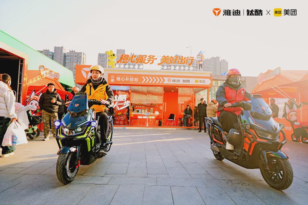 同时,在活动现场,雅迪创新打造了“补给+服务+休闲+情感”四维一体关怀空间,设置检修区、休息区、餐饮补给区、礼品区等多个功能点位,不仅为用户提供免费车辆检修,而且为高强度出行的外卖骑手赠送饮料、泡面、手套、围巾等暖心物资。