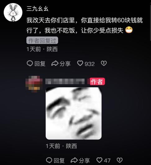 1月13日陕西烤肉店老板王女士(化名)碰到了个吃霸王餐的男子,对方不仅没给饭钱,还从她这骗走了60块钱。