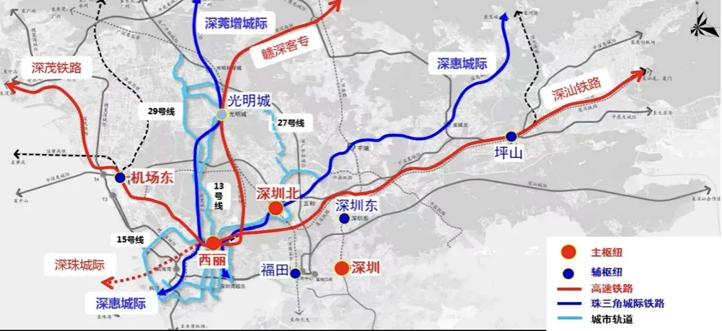 1️⃣西丽站:深圳枢纽主站,未来将引入赣深高铁、深茂铁路、广深第二高铁及深汕、深珠城际铁路等多条线路。