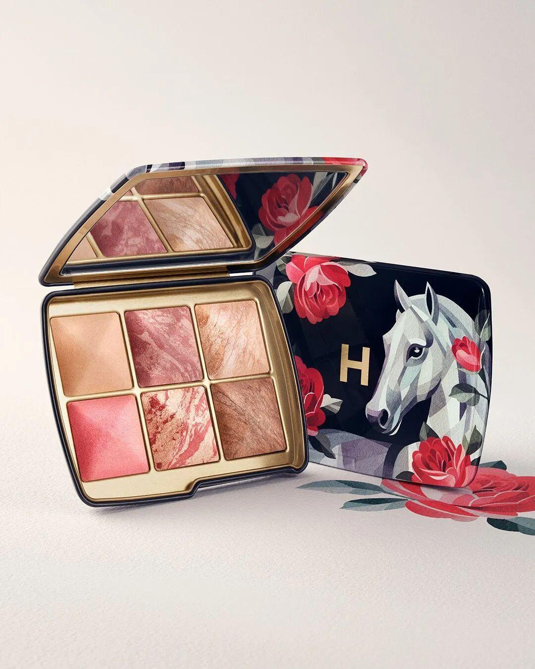 据悉,品牌此次中国新年限定彩盘包装由乌克兰艺术家sasha unisex倾情担纲设计,盘面图案为白马饰以玫瑰花,寓意着白马启新,以无拘的生机,开启繁花盛放的新程。此款彩盘包含柔光亮采系列6款销量明星色号,特别臻选浅金玫瑰配色,集柔焦定妆、立体修容、灵动高光、元气腮红,四效合一。彩盘所配六款色号既可单独使用,也可叠加使用,打造轻量、灵动且实穿的通透光感妆效。