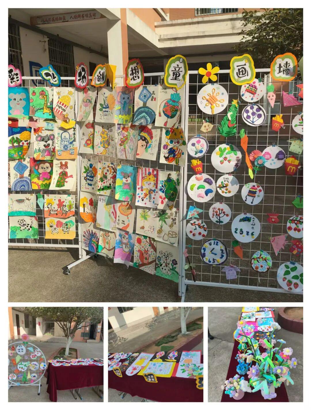 在一楼分会场,启智楼前操场化身为“童年艺术长廊”。“笔尖下的童年”书法展区笔墨飘香,“巧手幻世界”手工展区陈列着黏土、扭扭棒、简笔画、像素画等琳琅满目的学生作品,充分展现了孩子们丰富的想象力和动手能力。