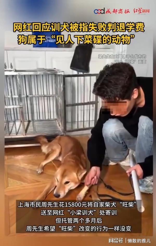 一句“狗是见人下菜碟的动物”,让网红训犬师“小梁”再次被推上风口浪尖。据1月17日报道,近日,其因被客户起诉“训犬无效”而遭法院判决全额退款15800元,这场围绕柴犬“旺财”的昂贵教育纠纷,终于一审判定。