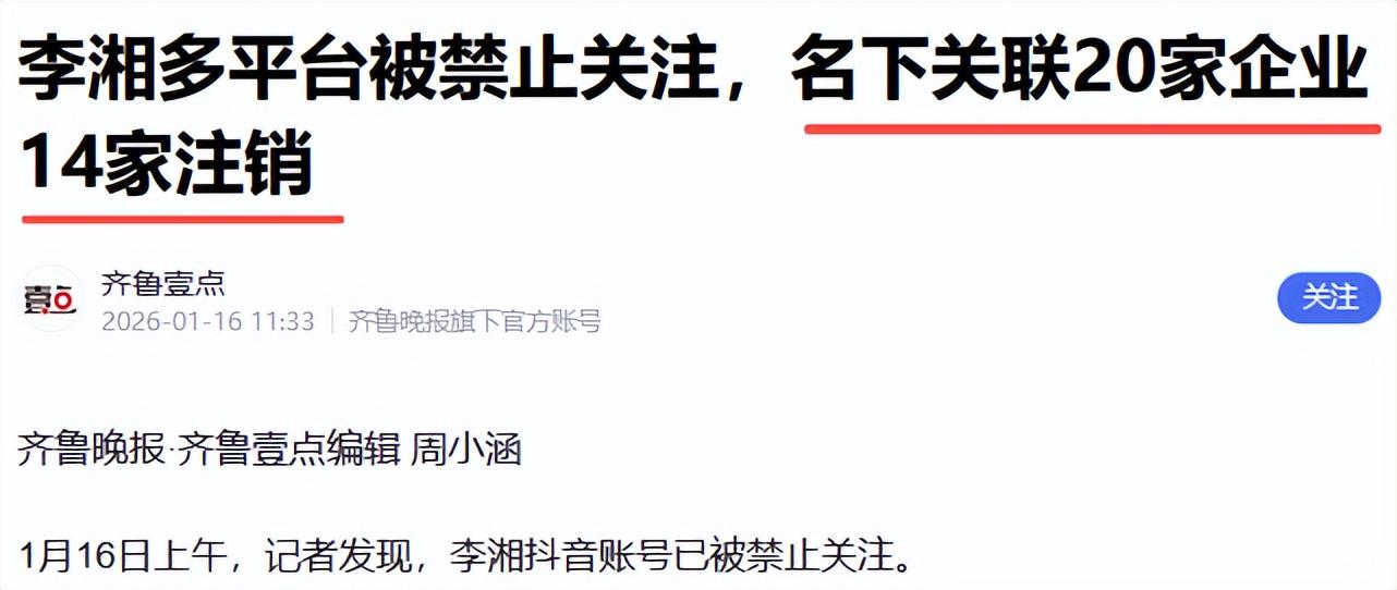 李湘的故事虽未彻底画上句号,但至少已向所有人敲响了警钟:在这个时代,绝无容纳只顾捞金、毫无底线之人的立锥之地。