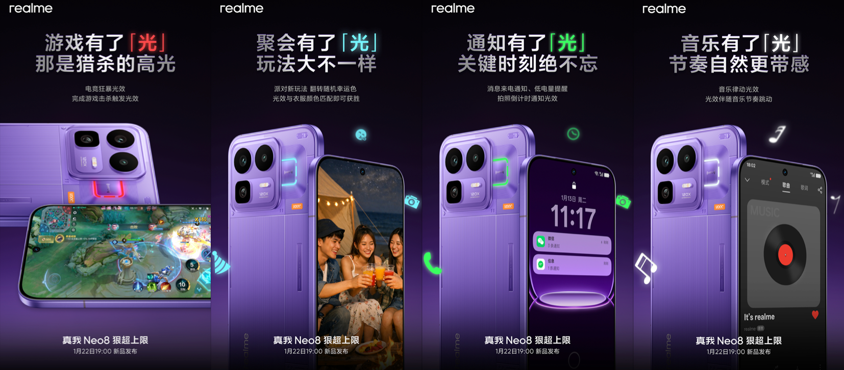此外,日前, @真我手机 官博还汇总了本周官方对于Neo8的预热信息。据其称,