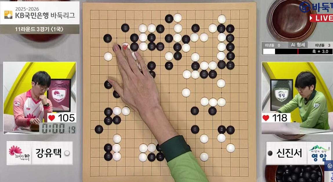 晚间时分,韩国KB围棋联赛继续进行第11轮第3场的比赛,赛果如下——
