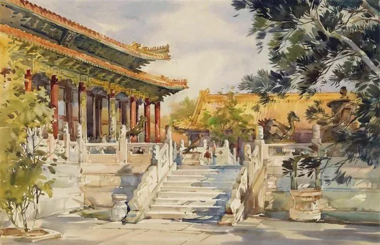 一是将自幼培养起来的中国传统绘画的审美观和技法与建筑水彩画融会贯通。
