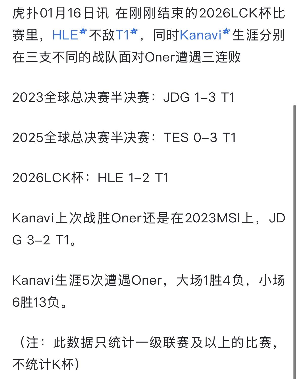 网友们也是调侃oner成了kanavi的严父,在三个不同的战队全部被碾压了。第一次是S13赛季的半决赛,当时在jdg战队的时候被T1战队3-1淘汰。紧接着就是S15赛季的半决赛,Tes战队的时候被T1战队3-0淘汰。最后就是这一次的lck杯对抗,在hle战队被T1战队2-1击败。Kanavi上次战胜oner的时候还是S13赛季的msi,jdg战队三比二击败了T1战队。整个的职业生涯,双方一共遭遇了五次,kanavi一胜四负,小场是6胜13负。