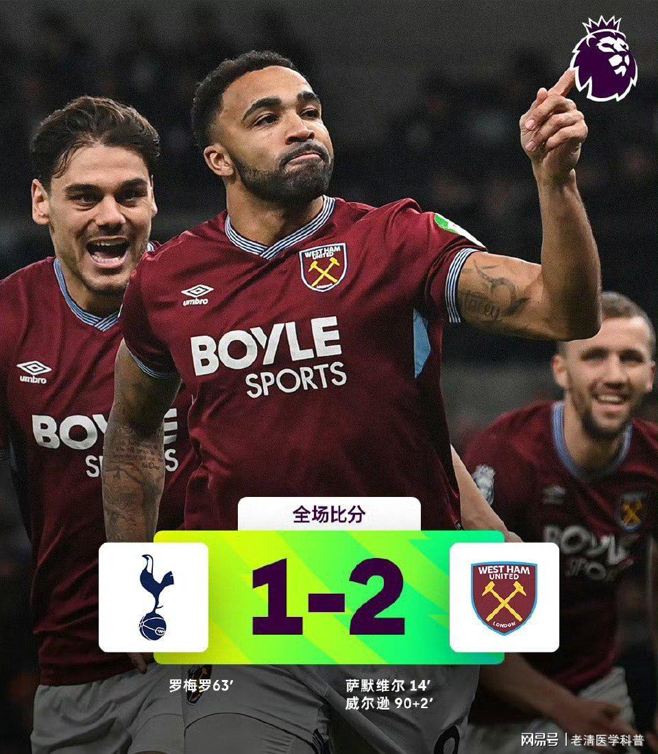 经过中场休整后热刺加强了进攻,波罗右路传中,罗梅罗近距离头球攻门取得进球,比分来到1-1平,伤停补时阶段威尔逊在角球机会中补射得手完成绝杀,热刺主场1-2输掉比赛,送给对手保级路上的关键三分。西汉姆联本赛季前6次伦敦德比全部输球,终于是在热刺身上拿到了胜利。