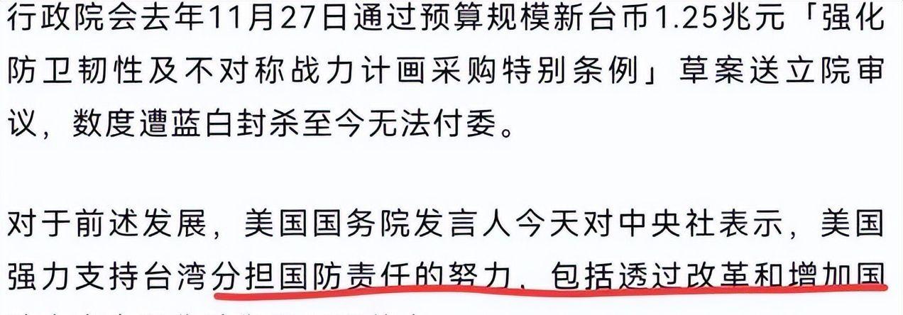 然而,美国国务院旋即又表态支持台湾提升防务预算,并推动国会通过23亿美元军援。