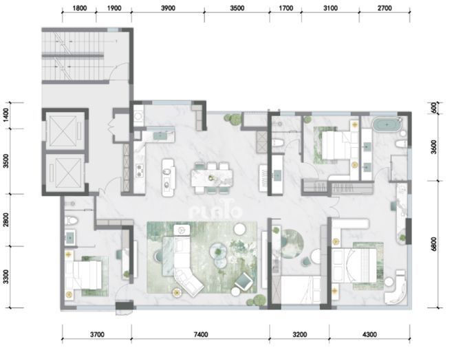 整体规划以中央景观为核,建筑呈现向心式围合布局,通过精细化的空间设计、酒店式的归家体验、超配置的社区会所,让社区成为繁华的过渡、客厅的延伸,打造现代森居生活社区。社区入口的商业“漫集市”,凝聚家门口的精致烟火气;兼具公共交流与私密归属的中央景观,让绿色在园区内自由渗透;首层局部架空的漫空间设计,为业主释放出更多风雨无阻的共享活动空间。户型设计力求保证户户拥有良好采光与通风,通过更敞阔的面宽设计、更精细的户型格局,最大化引入自然光和景观视野。
