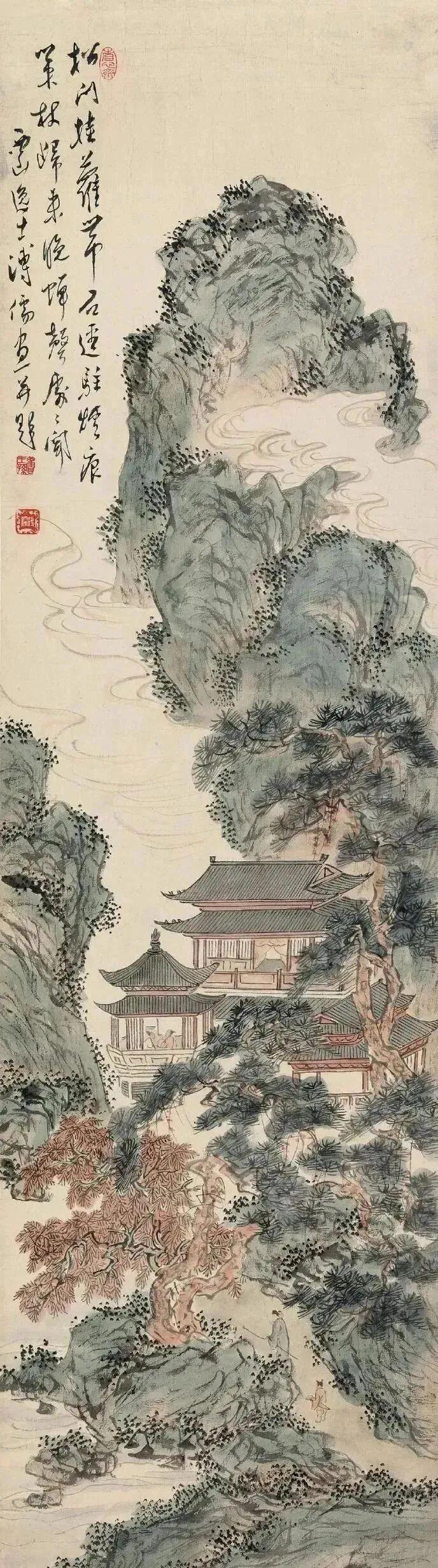 他的山水画,融合了南北宗技法,既有北宗的雄浑刚劲,又有南宗的秀逸灵动。画里的山川河流,仿佛都被他赋予了灵魂,静谧中透着股子仙气。可别看他画得这么“高冷”,其实他本人可是个爱热闹的主儿,喜欢在海棠花下开雅集,和文人墨客们吟诗作画,谈笑风生。