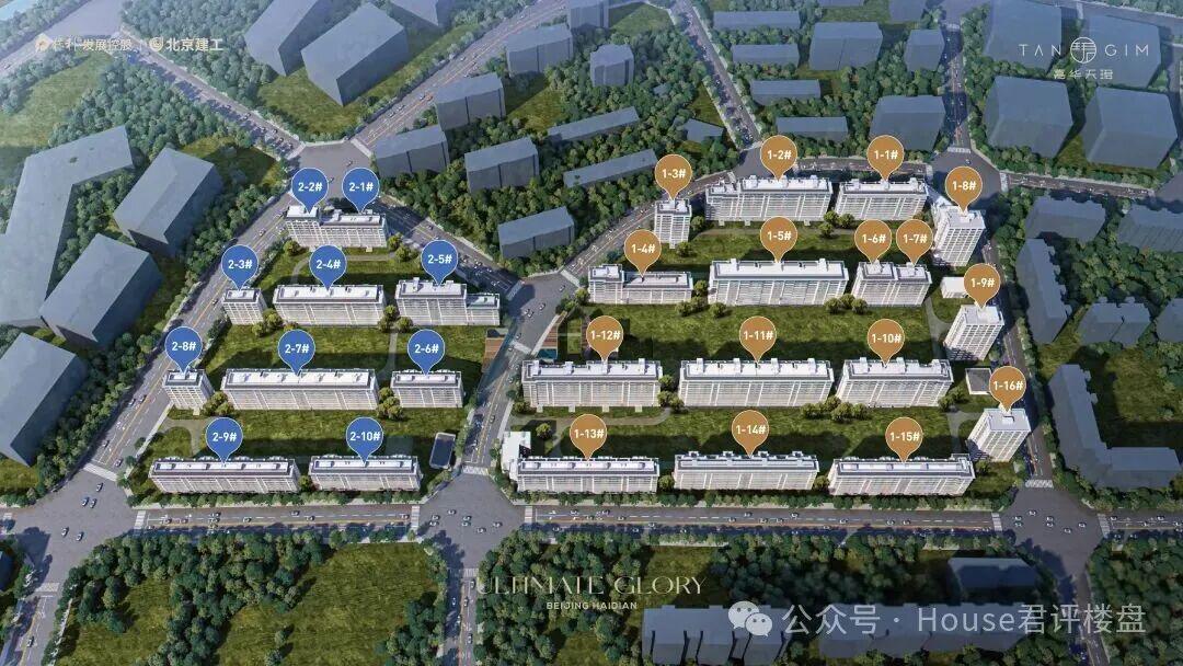 项目总占地7.9万方,分东西两区开发,容积率仅1.7-2.0,规划6-15层洋房与小高层,控高36-45米,在海淀核心区属稀缺低密社区。
