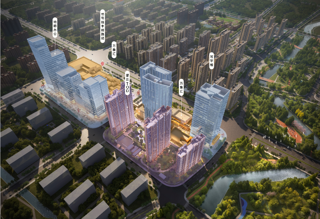 商业配套方面:项目本身就是一个自带商业的TOD,华润置地规划以万象系列融汇轻奢时尚、休闲生活、运动潮流等多元业态,打造北中环“都市商业新旗舰。除了未来的万象系商业(规划中),周边还有经纬汇、聚丰购物广场、上坤城市广场、山姆会员店等,购物还是比较方便的。