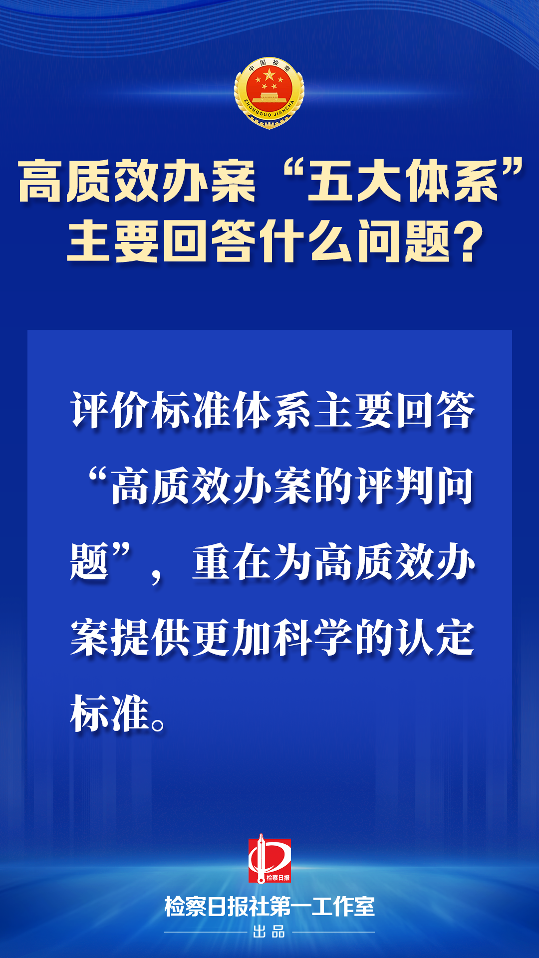 着力构建高质效办案的评价标准体系:评价标准体系主要回答“高质效办案的评判问题”,重在为高质效办案提供更加科学的认定标准。要区分不同业务条线、不同案件类型,科学制定办案质效标准,让“高质效”有依循、能对照、可评价。