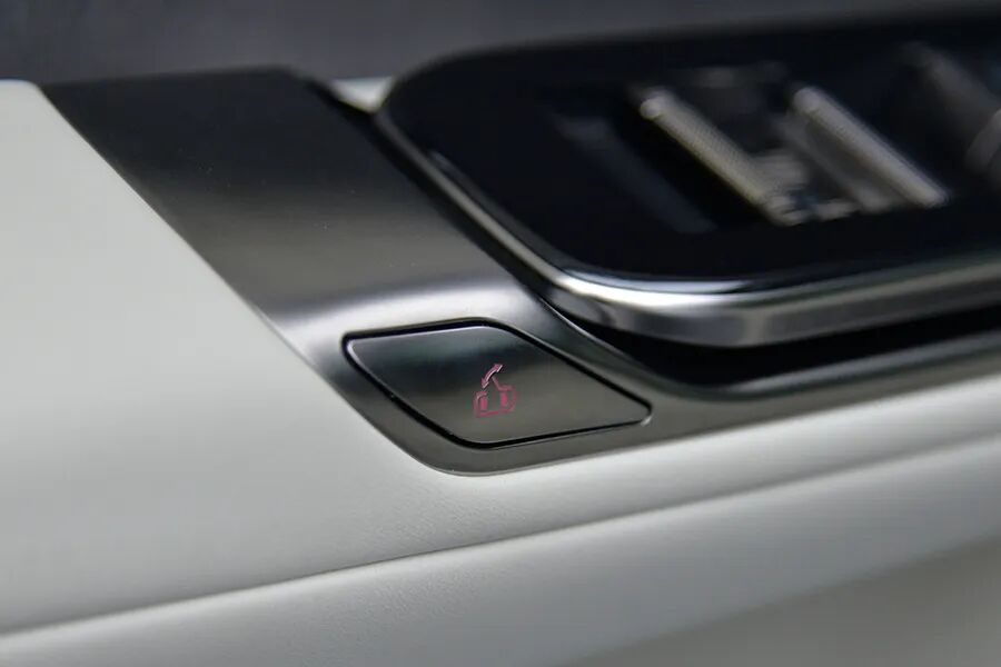 这辆车与腾势N9一样,车门内饰板上的解锁按键,只是一个“解锁”,不会自动开门,因为有电机阻力存在,所以需要非常用力向外推才能开门。如果你想电动开关门,需要按头顶的按键,有点不方便。