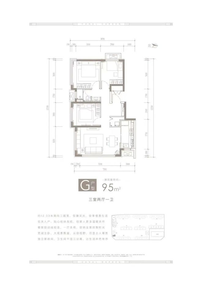 95平米东西南三居室
