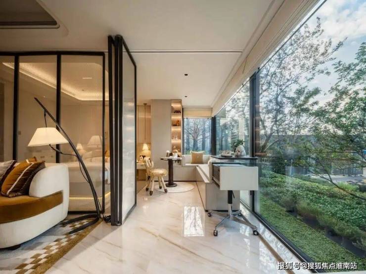 向外塑建筑美学,南向立面金属和玻璃占比超90%(阳台除外)+58米宽礼序门庭,让家既是“空中观景台”,也是“归家的仪式场”。