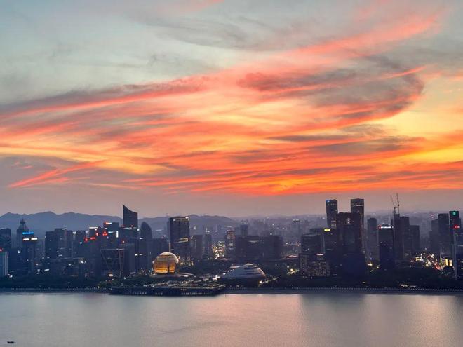 站在戴昆执笔的C51云端会所,你能收获壮美的“云端上帝视角”:天晴时,窗外的天光流云仿佛近在迟尺,整个人如同凌驾于城市天际线之上,甚至能将10公里外的西湖群山和六和塔收入眼底