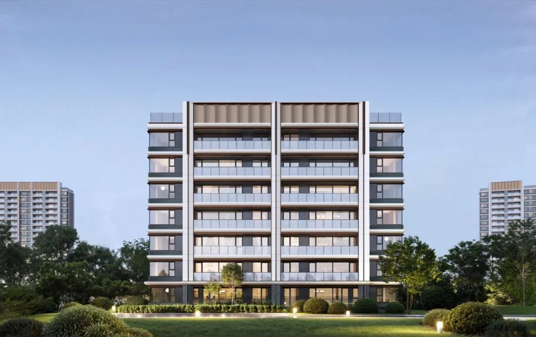 项目总占地约3.15万㎡,总建筑面积约10.4万㎡,计容建筑面积约6.3万㎡,容积率2.0。4栋小高层+11栋洋房,自北向南呈阶梯状排布,构成错落递进的城市天际线。