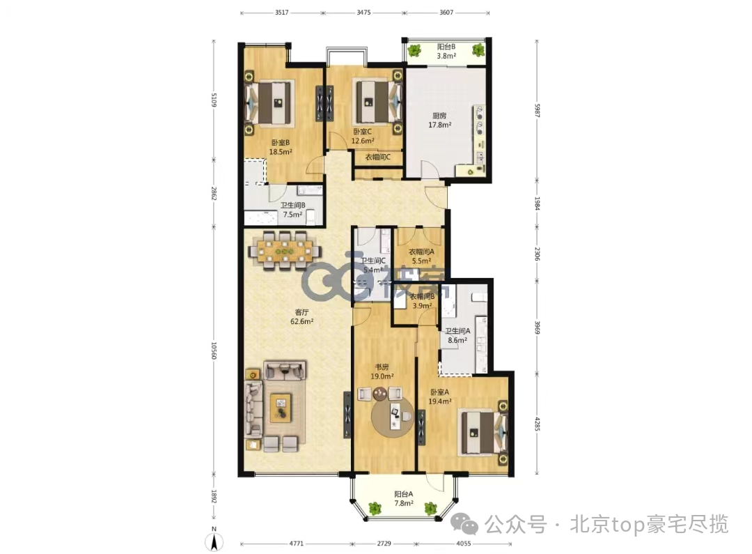 顶复:全部四居426/518/572㎡,1-1.5亿