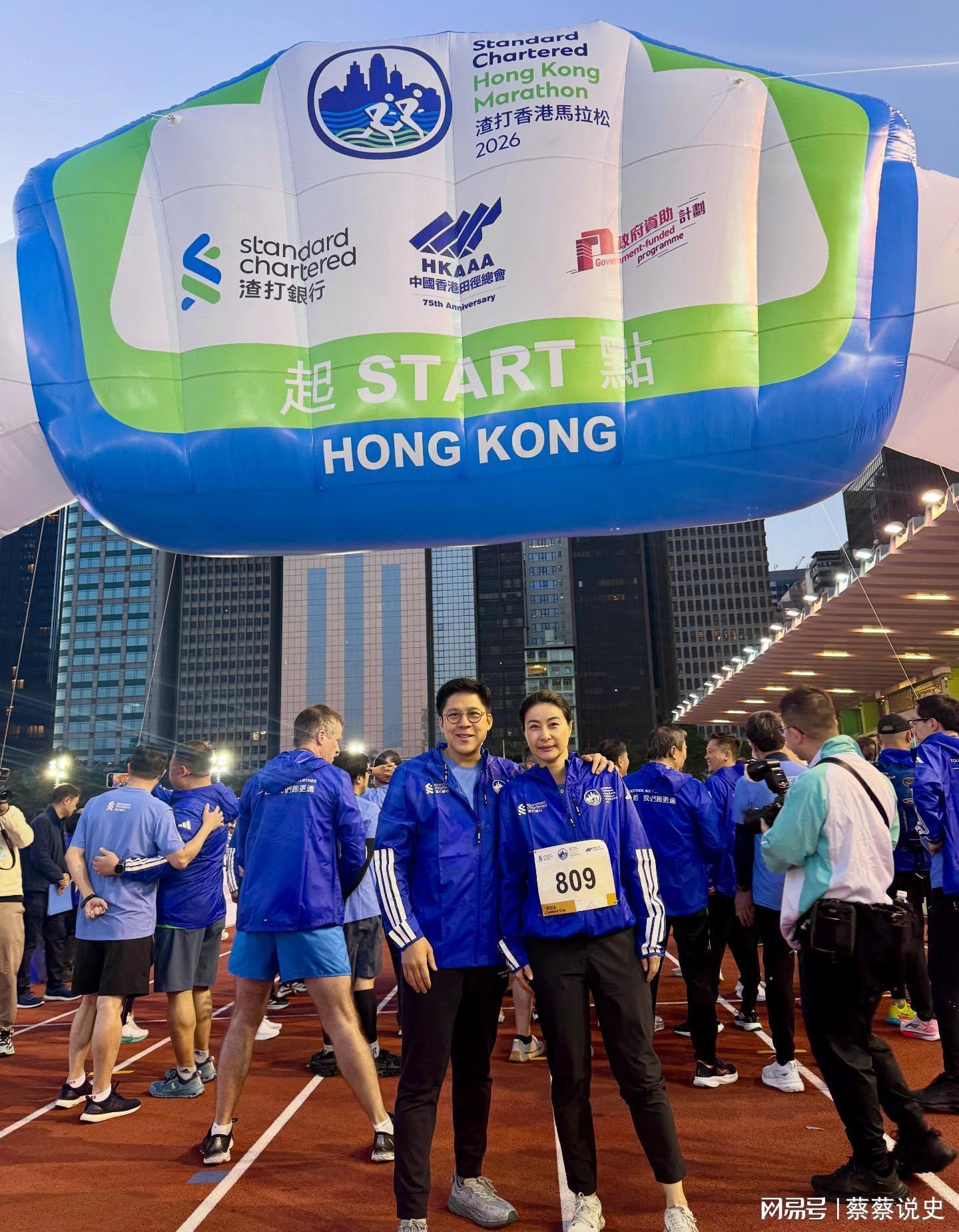 早在此前,他们夫妻一起参加香港的渣打马拉松。