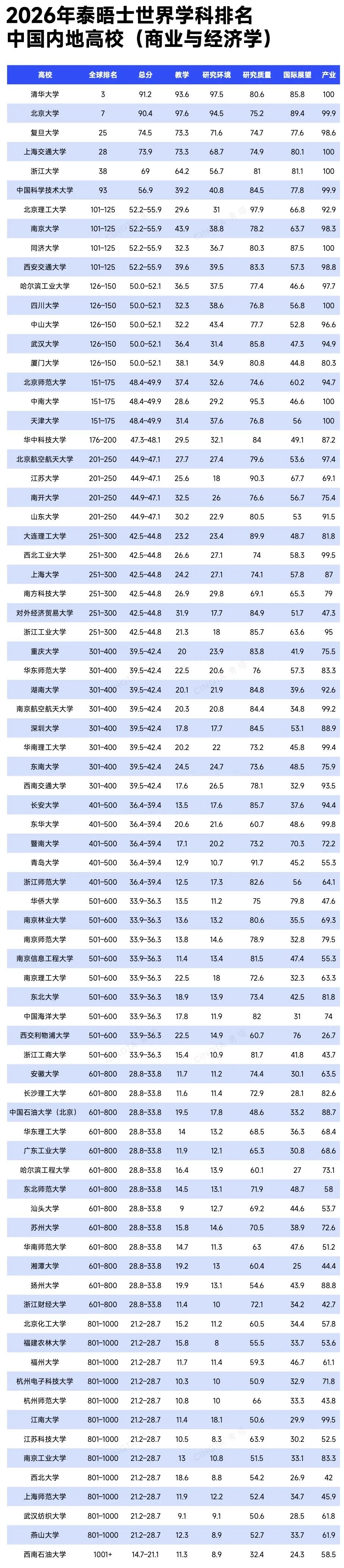 2026年泰晤士高等教育世界学科排名1月21日正式发布。