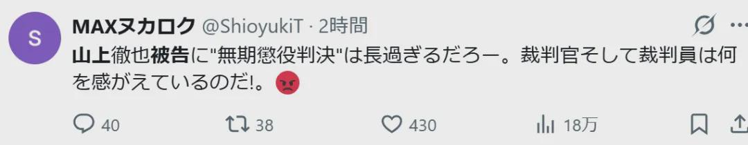 山上徹也被判了无期徒刑,那个逼车的“路怒男”却只判了18年,理解不了。
