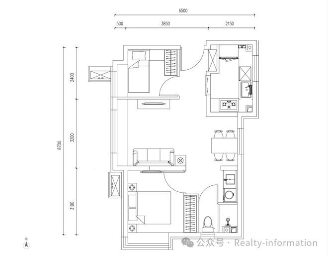 建面约65㎡A8两居两厅一卫:优质,稀缺产品