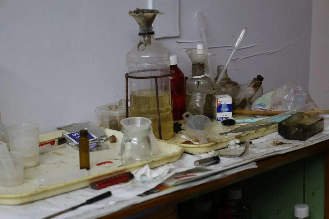 杂乱堆放的实验器材。图源:金华消防